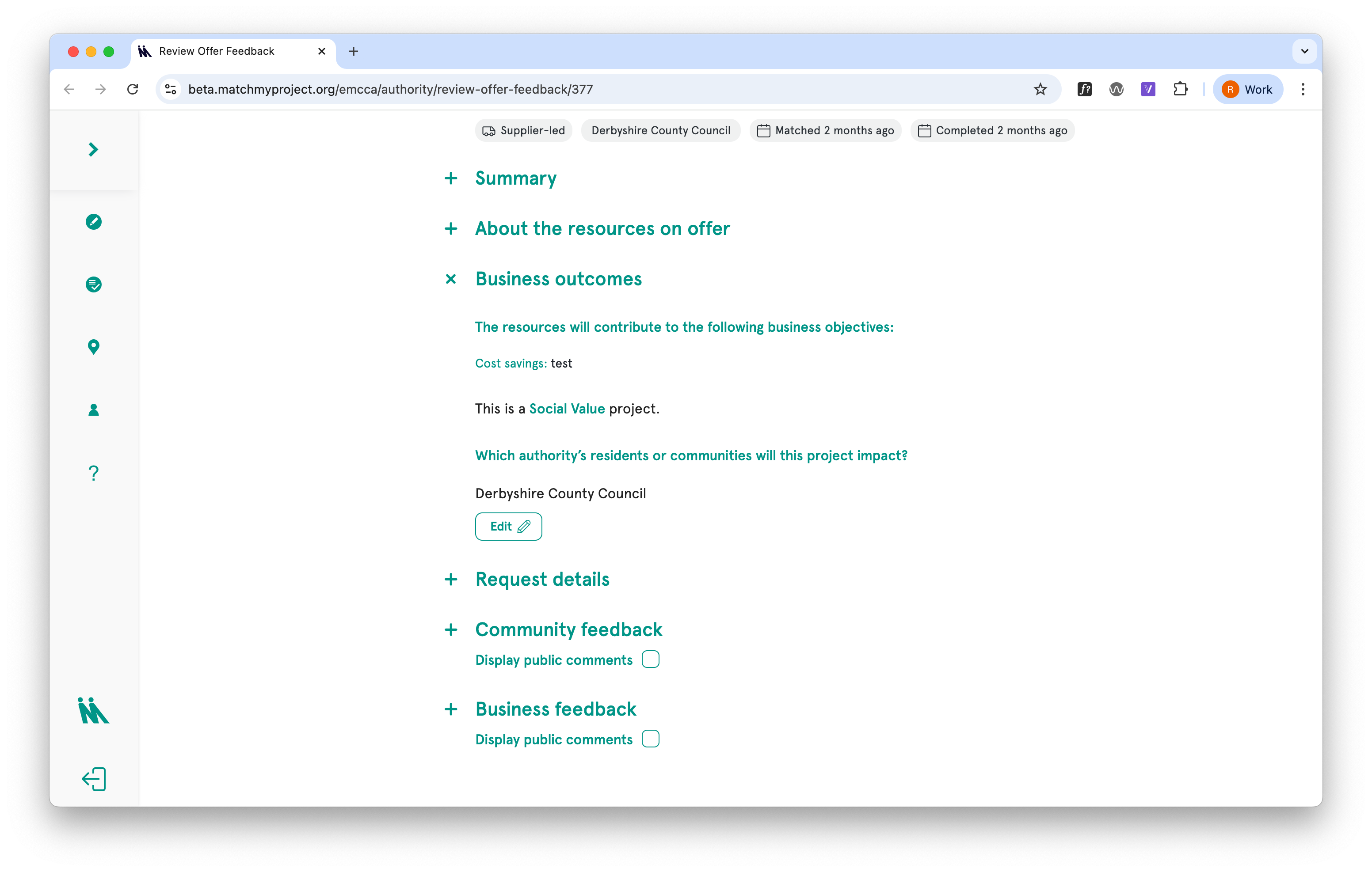 The authority can see the relevant information under the offer’s ‘Project outcomes’ and ‘business outcomes’