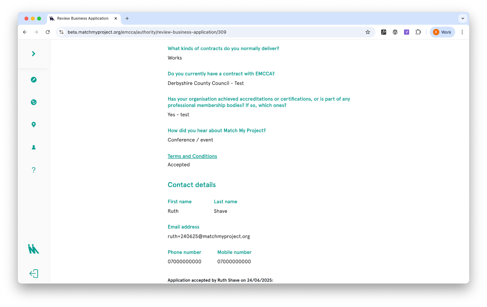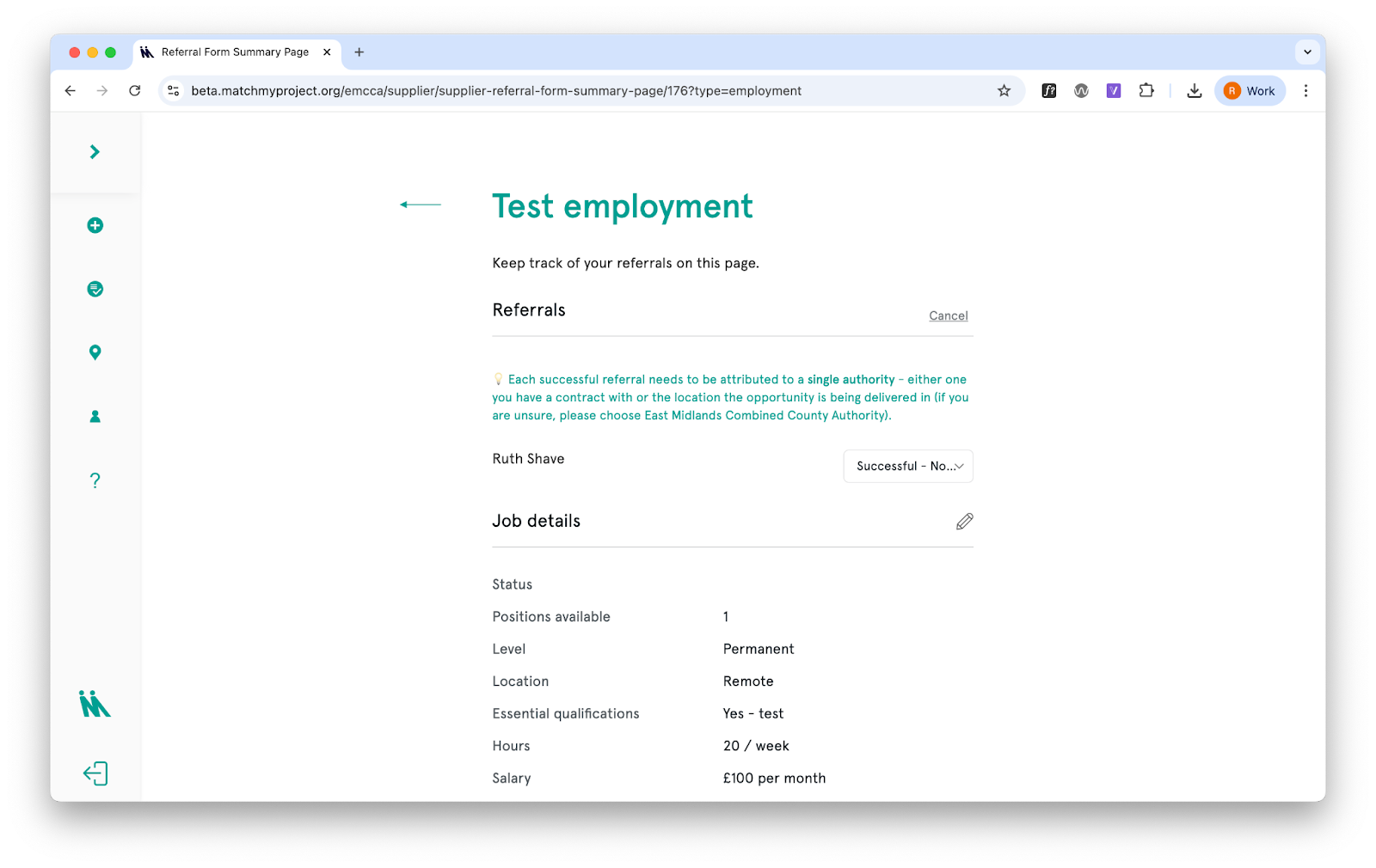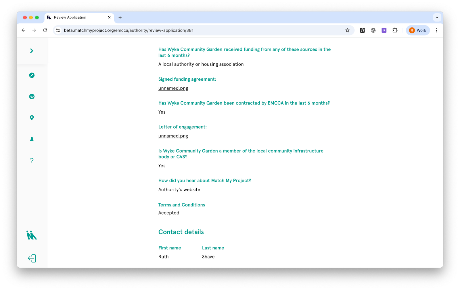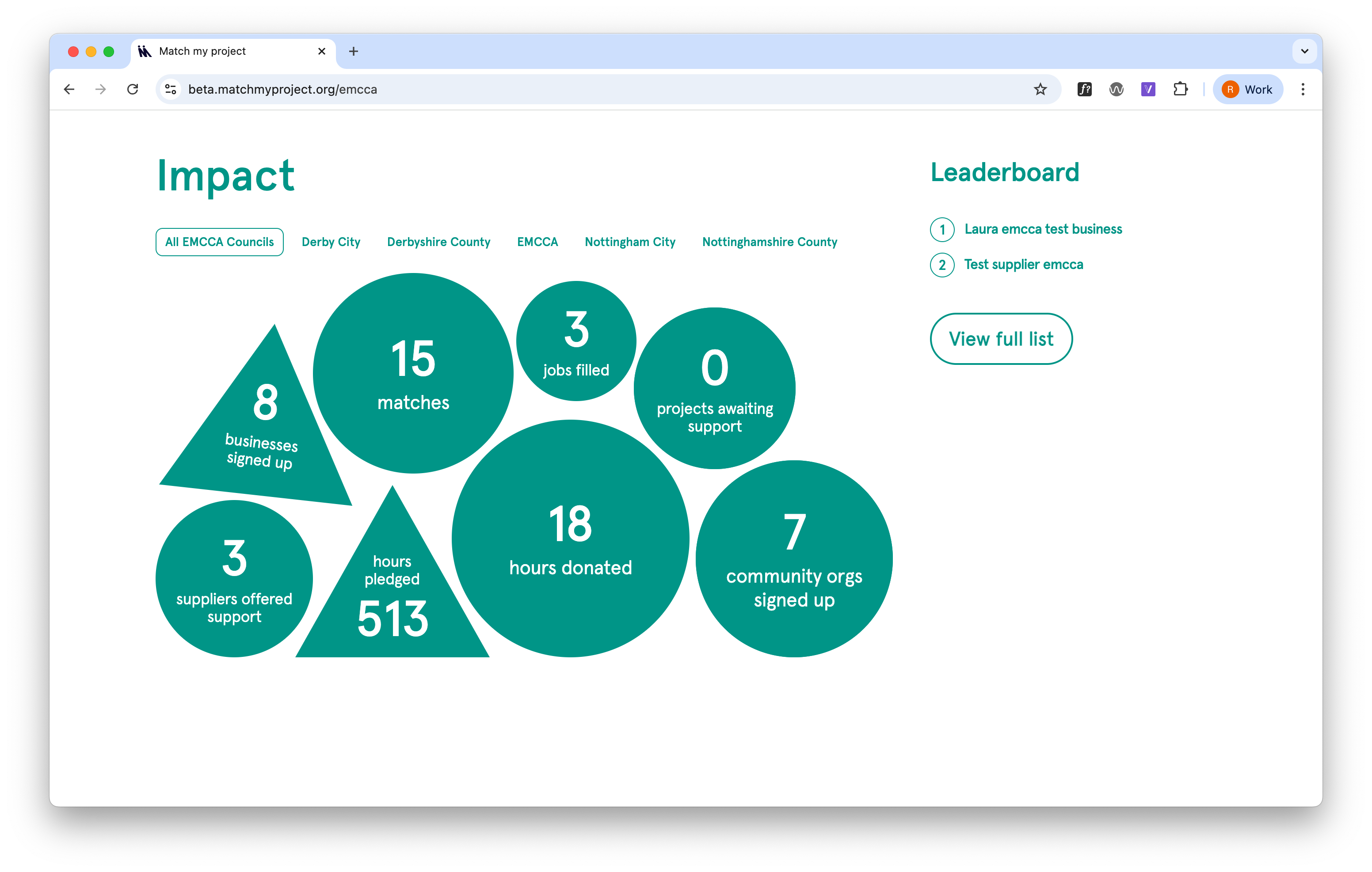 Authorities in the network (city and county councils, for example) can track which applications and matches are linked to their organisation, both on the site and in the data download.