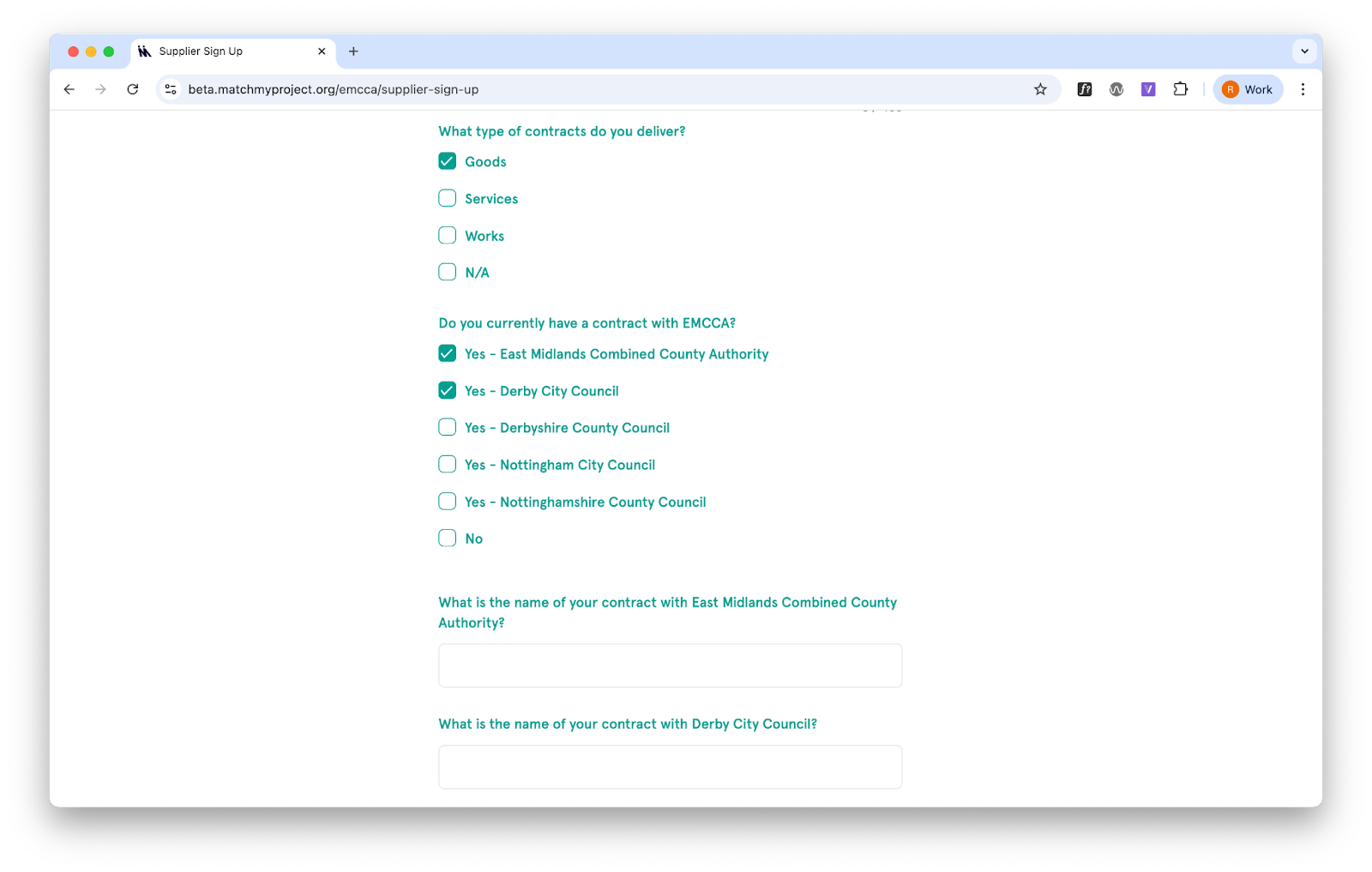 When community organisations and businesses apply to join the site, they answer questions to identify any existing relationships with the authorities in the network. This information is used to help the authority review and approve organisations.