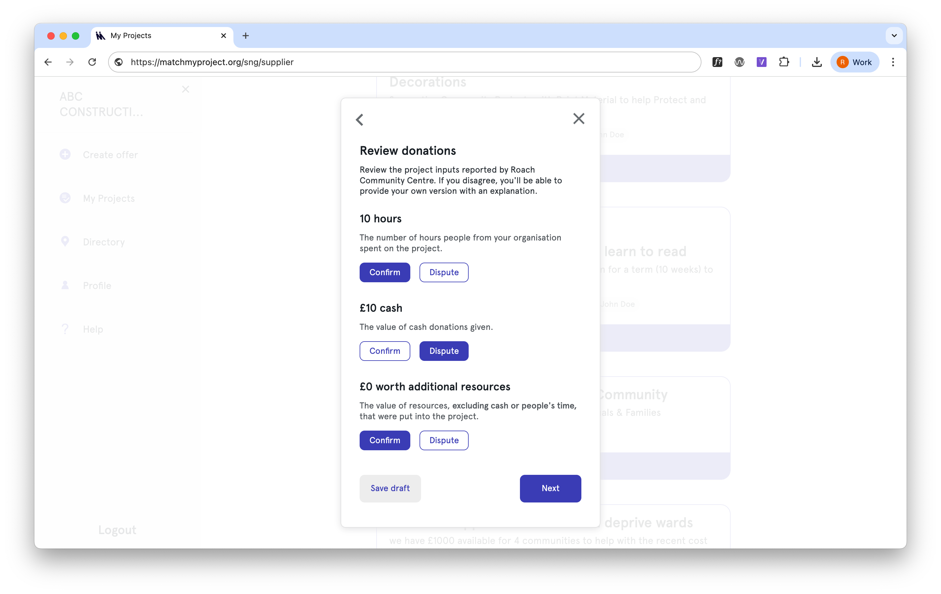To give you more confidence in the metrics being shared, both parties will be able to input or verify the value of resources that were given as part of a match. Previously VCFSEs had to input these values when sharing feedback.