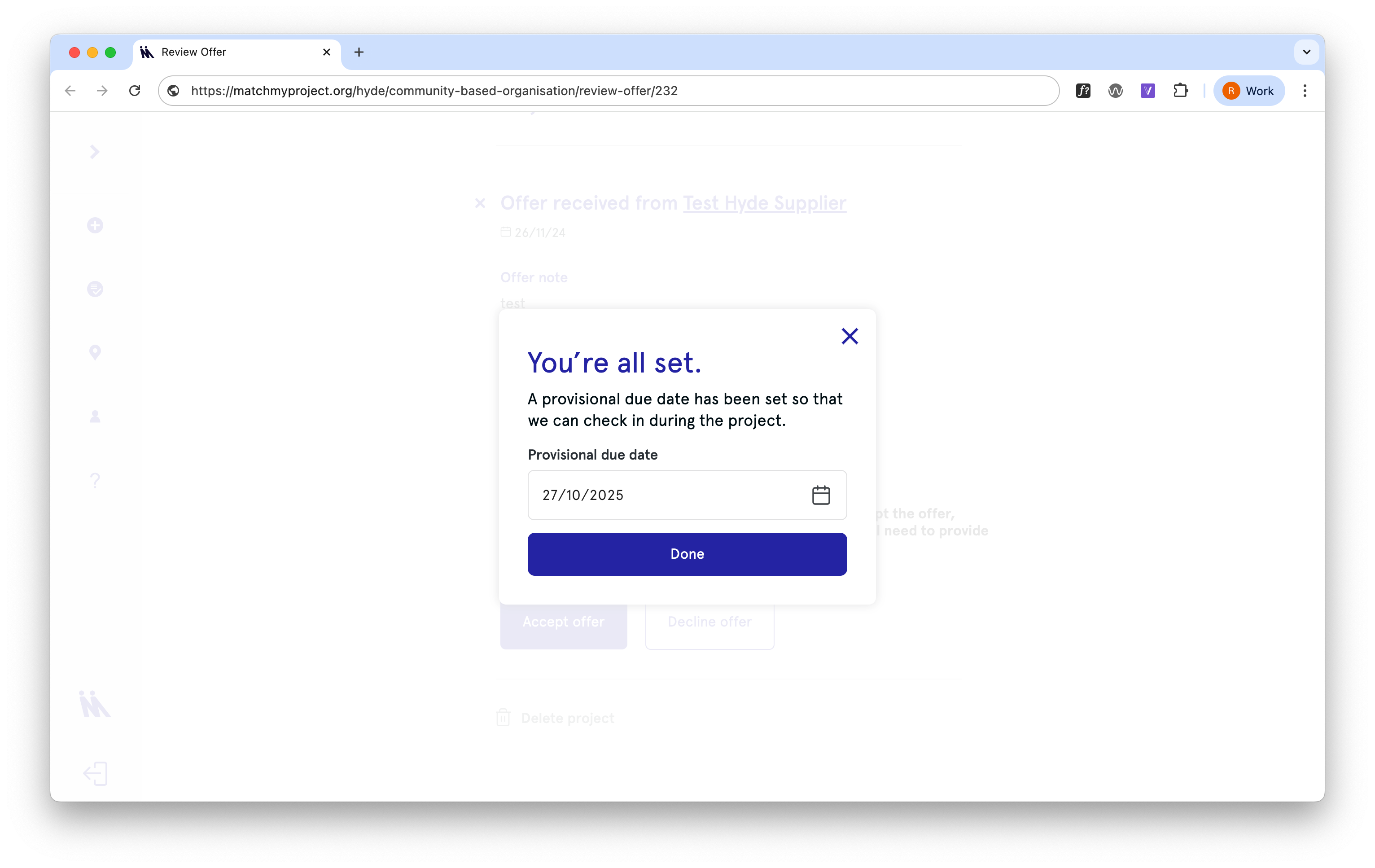 Now, you can track matches more easily with the addition of a provisional due date, which is created when organisations match.